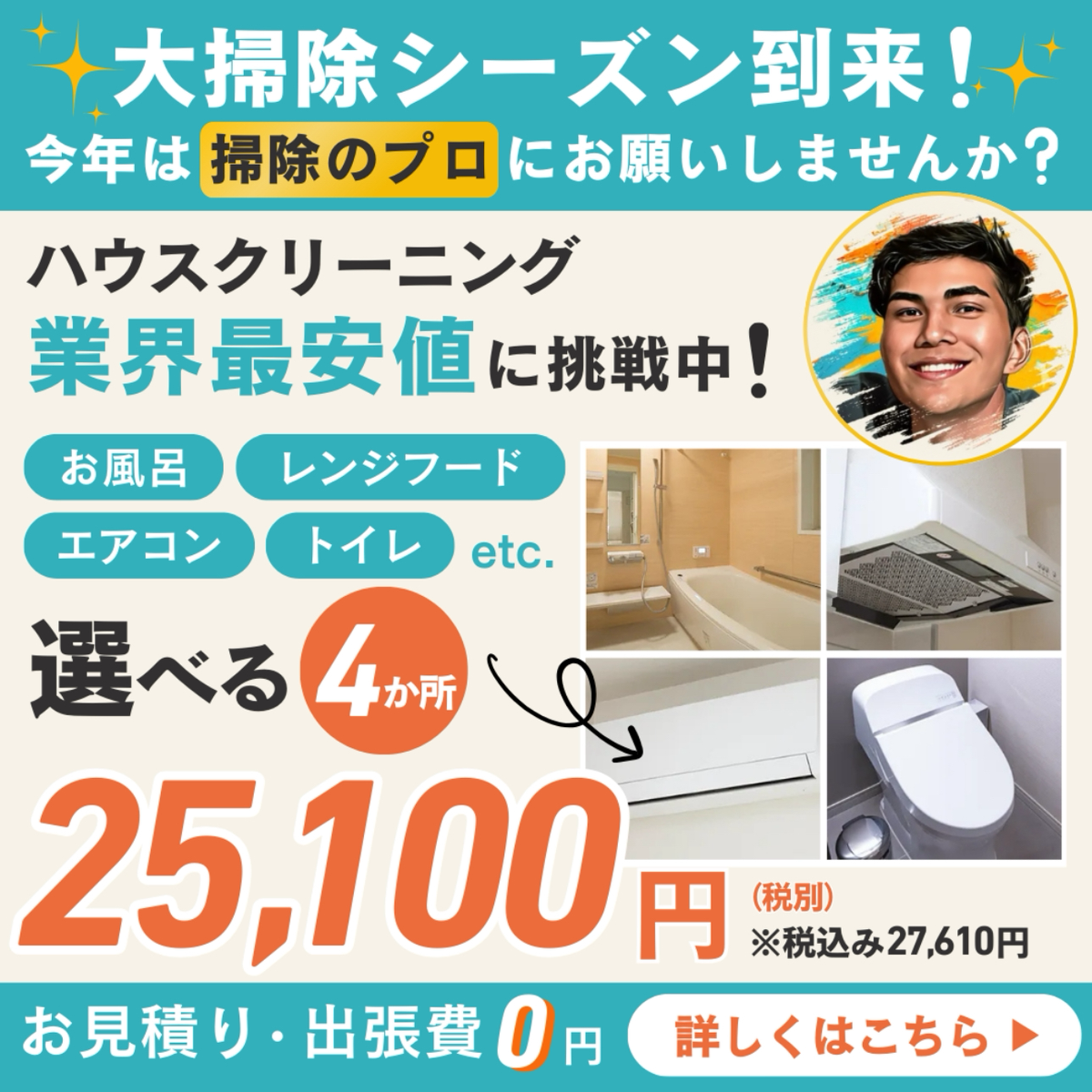 >>今年の大掃除はハウスクリーニングを検討している人は【すーちゃんクリーニング】を見てみる